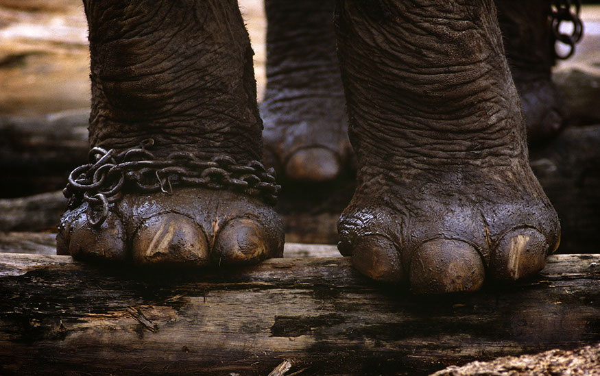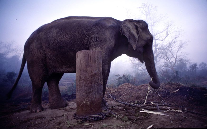 Malaysia: Translocating a "wild" elephant to the north of the country to remove the animal from the villages that it had been ravaging... that is, where it was finding food. The area where it was translocated to is filled with unexplored landmines.... The villagers place pungi stakes in the ground with human feces; the elephants step in these traps and are injured genralluy losing their legs and their lives.