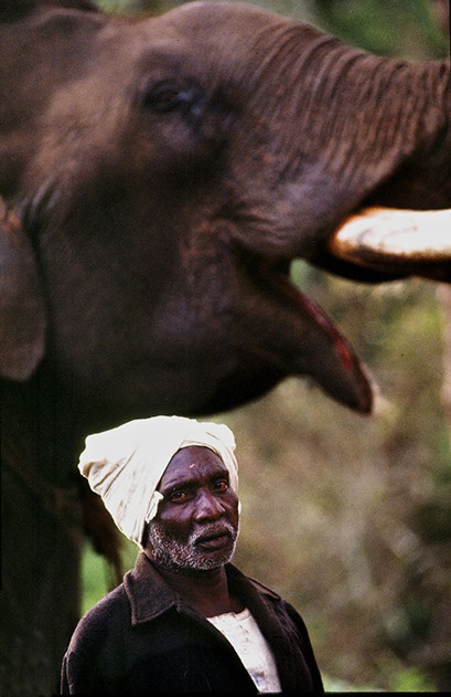 Sri Lanka: The face of a man who has worked with this elephant since he was a boy, and his father before him was the mahout of this same elephant.